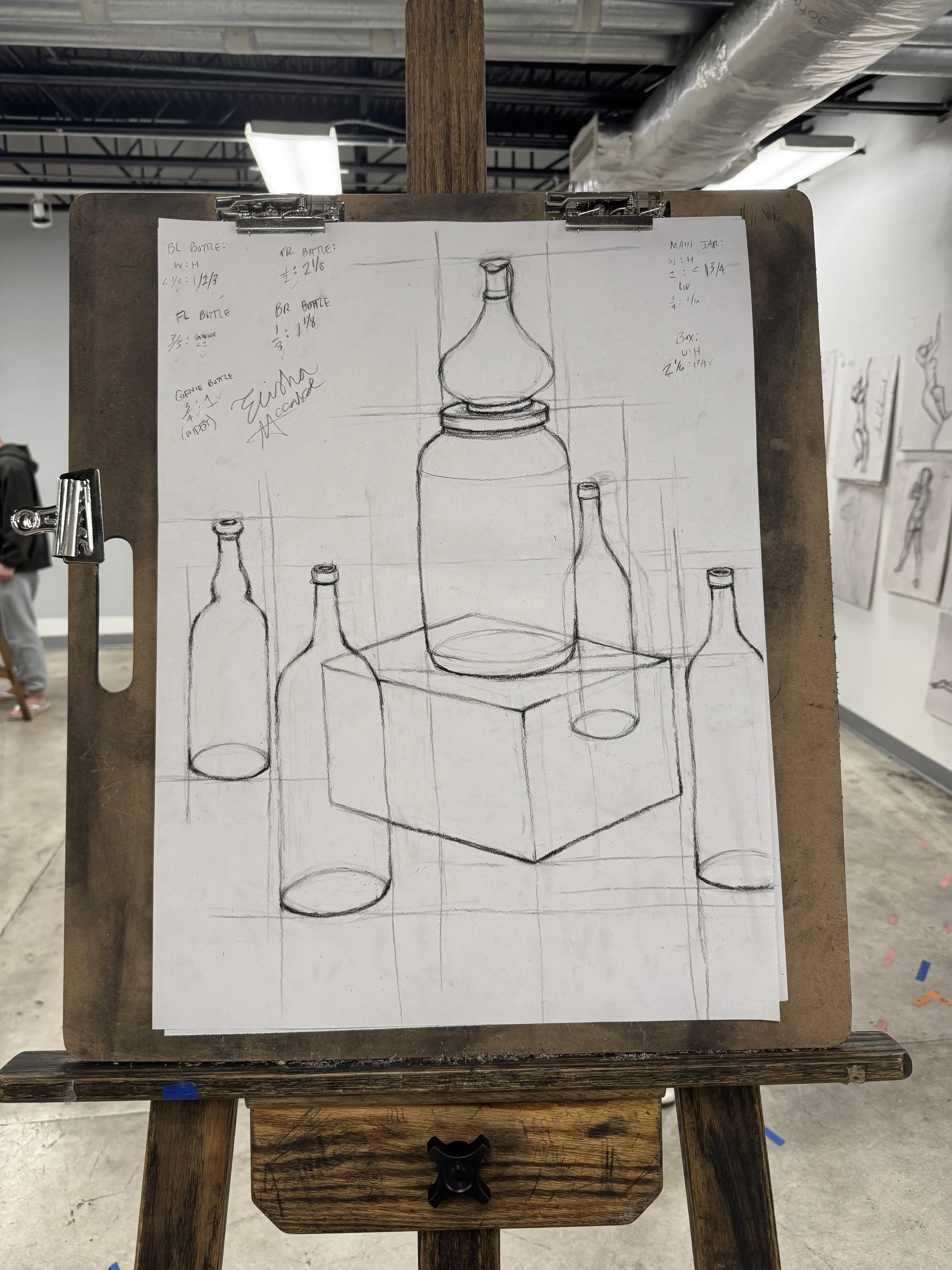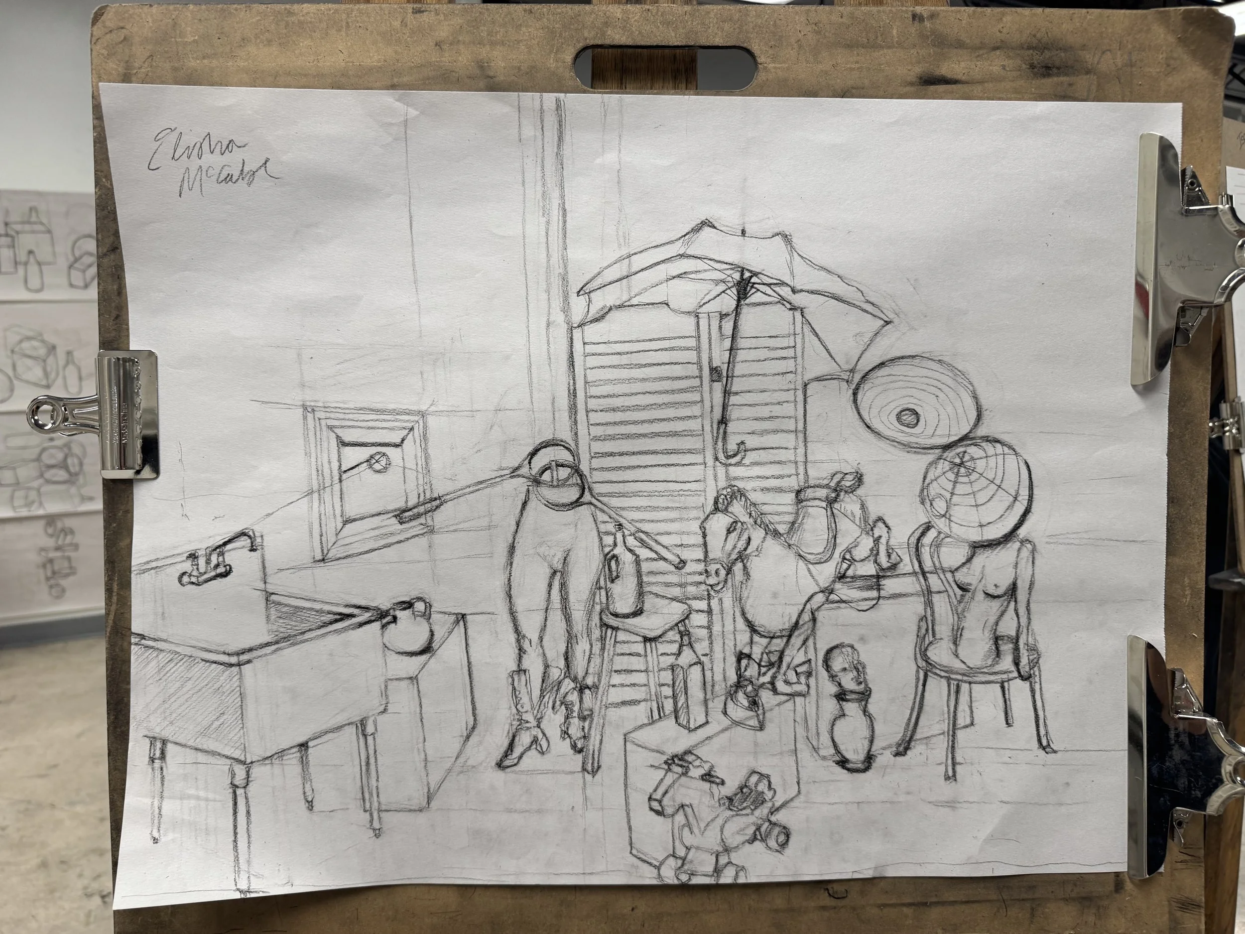 This course, which I am currently taking, focuses on illustration techniques such as perspective measurement, line variation, and shading.